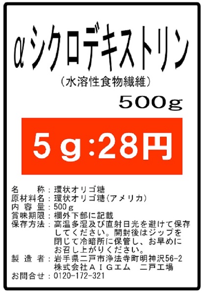 αシクロデキストリン(サイクロデキストリン 環状オリゴ糖)500g 微顆粒 サプリ★送料無料★平日14時まで当日発送 ※混雑時除く